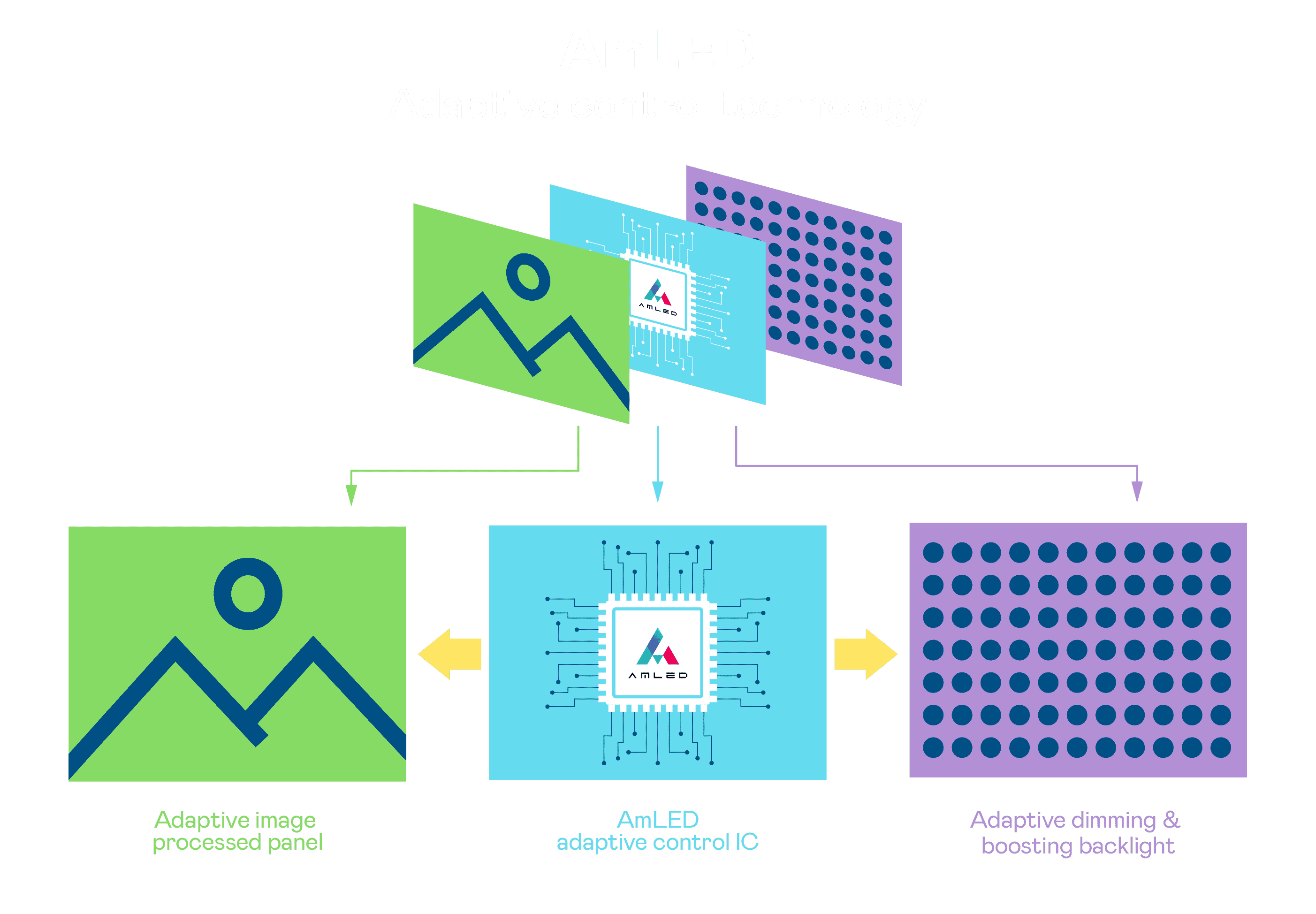 AmLED 具备更省电与低蓝光特性。。与一般的 LED 背光显示技术相比,,,由于 AmLED 常时处于局部调光状态,,其功耗仅有前者的 50% 左右,,同时 AmLED 还具备低蓝光特性,,满足长时间使用的护眼需求。。。
