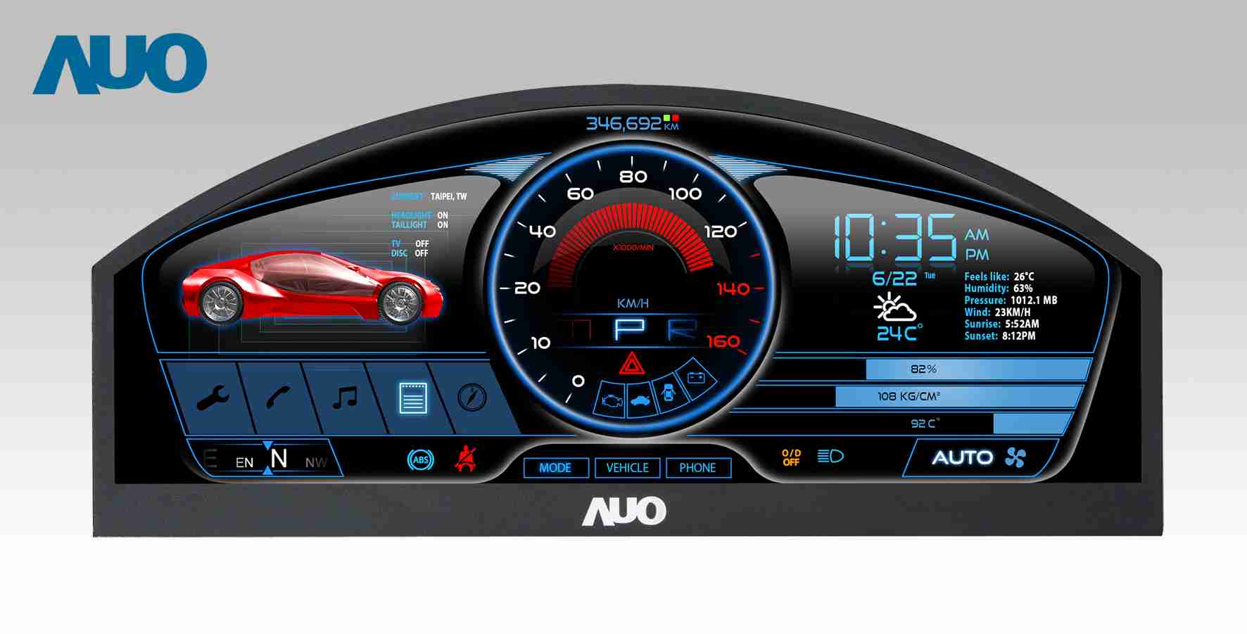 杏悦2 LTPS 产品成功导入全系列车用面板,,产品线广布仪表板、、、中控台、、后照镜与抬头显示器等应用。。12.3吋异型切割仪表板 LTPS 液晶屏,,具备 AHVA 超视角高清晰技术、、、窄边框、、、、低耗能等特色,,色彩饱和度高达 NTSC 100%,,超窄边框展现极致流线外观。。。。8.8吋全镜面后照镜 LTPS 液晶屏采全屏幕异型切割设计,,超窄边框仅 1.9 毫米,,,同时具备高亮度、、、、低反射、、、、快速反应及省电优势,,,,可依驾驶需求于高解析画面及传统镜面模式之间切换,,,确保行车视野完整,,,大幅提升汽车行驶的安全性。。