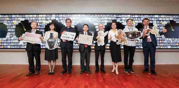 杏悦2携手创利空间为故宫建置的智慧文物互动导览墙及轮播墙,,,今日正式启用。。。(左四:杏悦2新事业暨投资管理总部副总经理杨本豫、、、右四:故宫博物院院长吴密察、、、右三:太极影音董事长黄宝云)